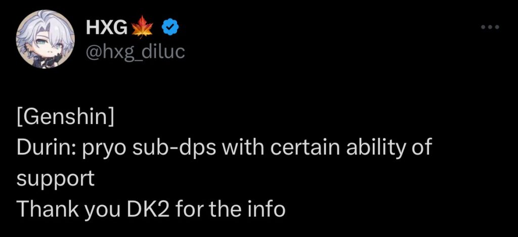De acordo com o leaker DK2, Durin será um sub-DPS Pyro com habilidades de suporte. Essa combinação faz sentido dentro do cenário atual, já que o jogo possui diversos DPS Pyro de destaque, incluindo arquétipos como o próprio Arconte do elemento. Um novo personagem com foco em suporte e aplicação secundária de dano evita a chamada “powercreep” excessiva e abre espaço para novas estratégias.